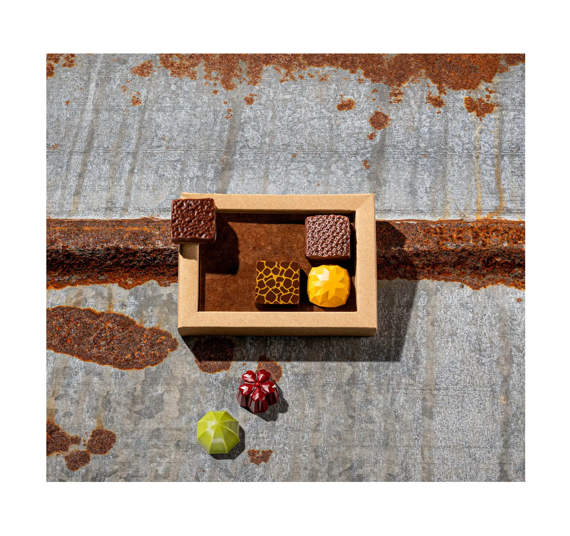 • Кутия 6 авторски веган бонбона, които ще опровергаят “веган скептиците” - виолетка, облепиха, пуканки, ягода с босилек, кокос и ананас, маракуя
